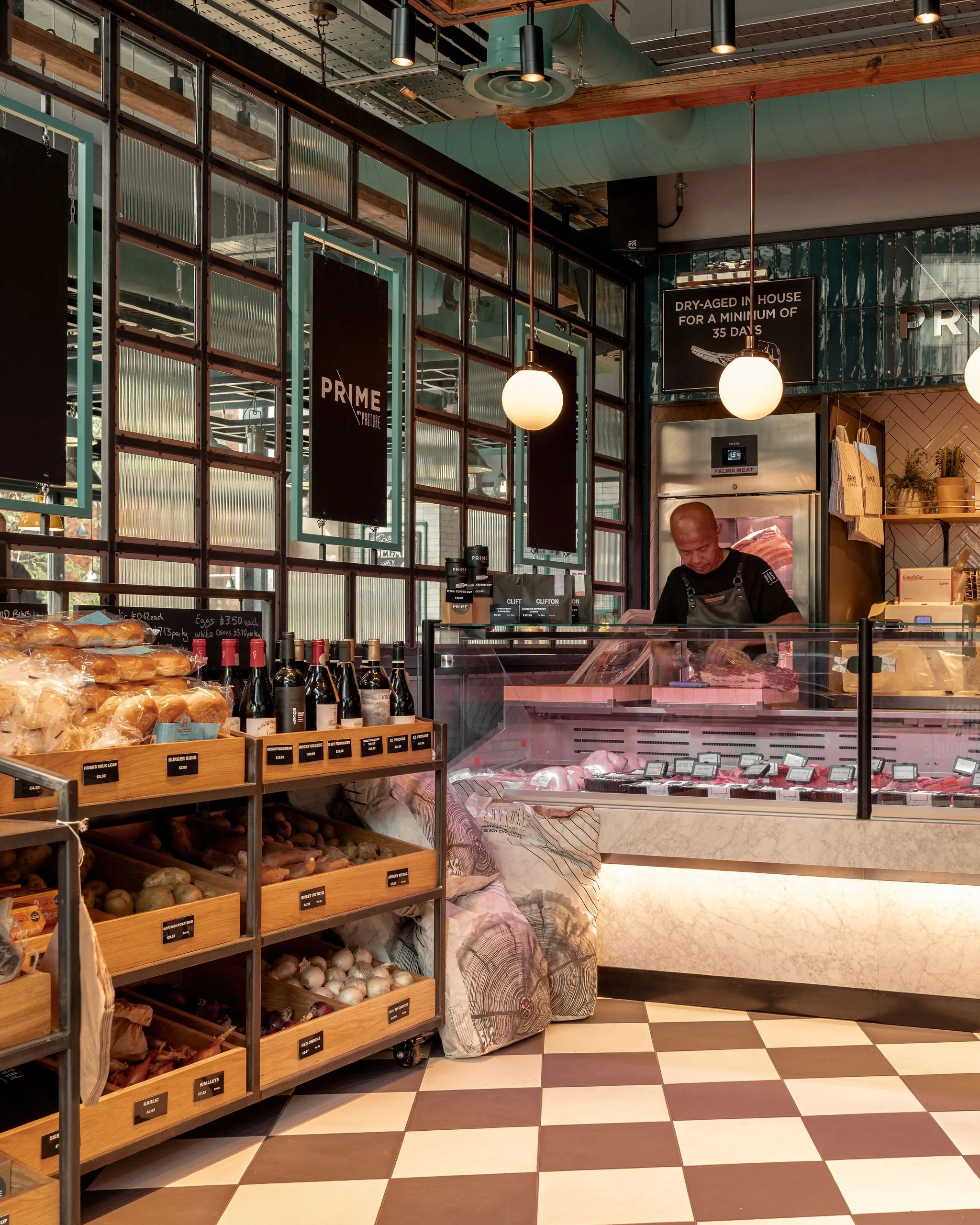 Though compact at under 25m², Pasture Butchers is bursting with character and thoughtfully curated offerings. A striking marble counter and chilled display house a premium selection of meats, while fresh produce, dips, and carefully chosen drinks are showcased in a distinctive aquamarine-tiled chiller, making every visit feel like a true culinary discovery.