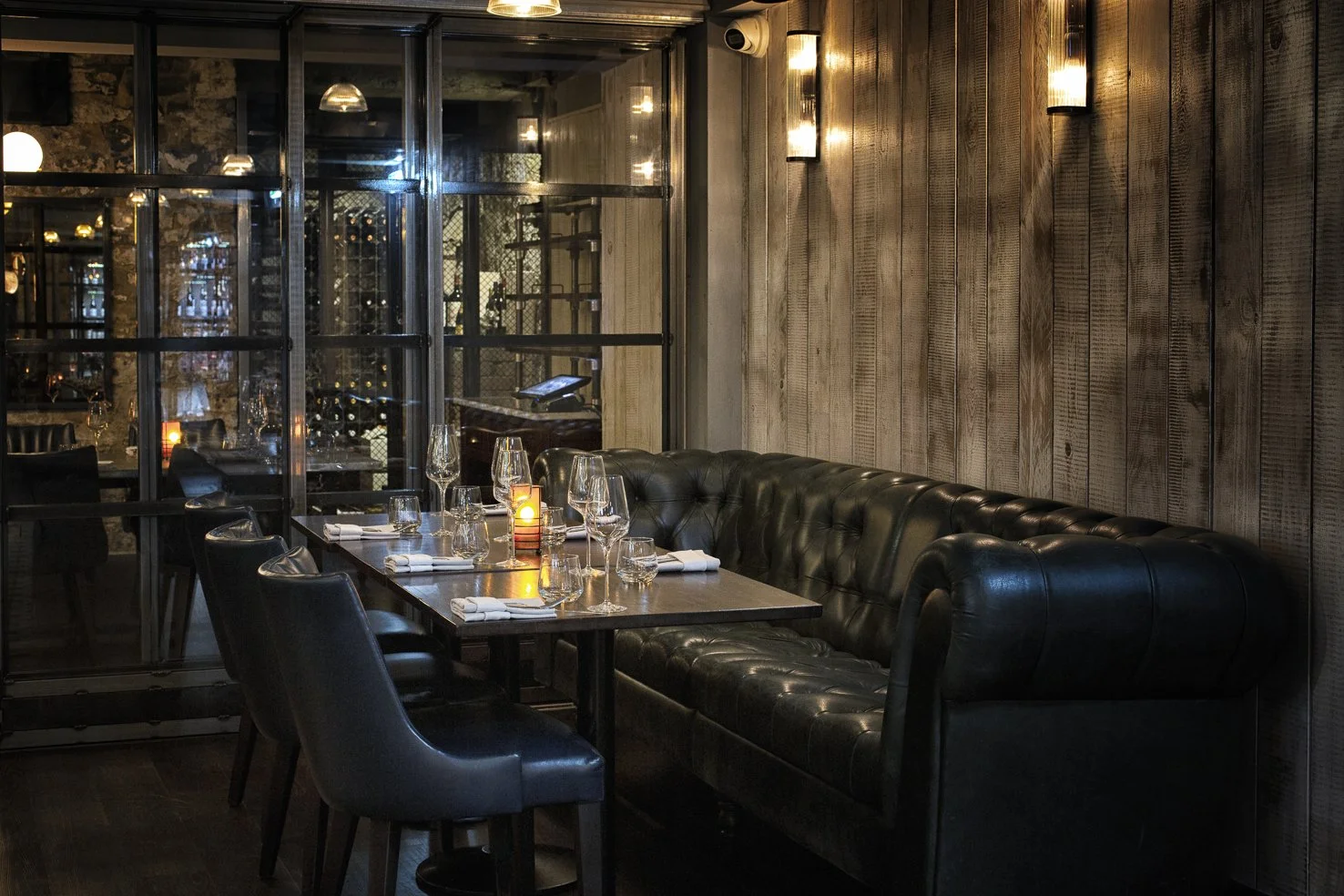 Moving downstairs into The Vault, private dining rooms carved out of the existing stonework surround a basement bar. Here you can find lounge-style seating, cocktails, complimentary dishes and an abundance of fine wine.