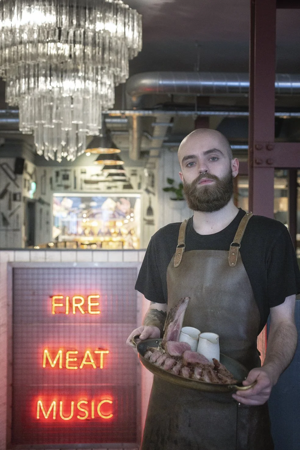 Proudly settled within Castle Quarter, just a stone’s throw away from Cardiff Castle, Pasture promises to make fine dining accessible to everyone. Honest, raw, industrial, but ultimately refined: Pasture’s passion focuses on the quality and theatre surrounding making and sharing food whilst celebrating the process from farm to plate. The exposed brickwork of the building is stripped back, holding an open-kitchen showcasing fire-based cooking and charcoal grills.