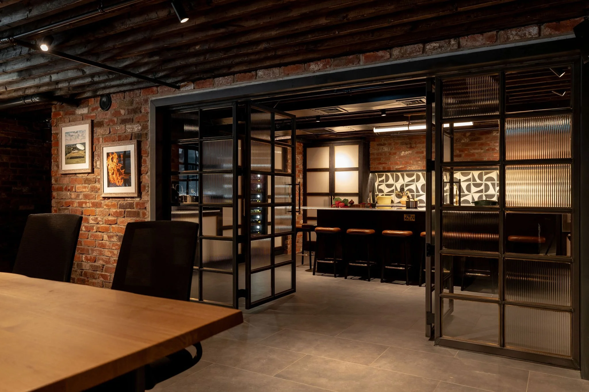 Part workspace, part dining destination, and part film studio, the space is centered around a large communal table, acting as a hot desk by day, and a private dining table by night. Whether it's team meetings or intimate events, it sets the tone for creativity and connection. It’s complemented by a fully equipped development kitchen, designed both for live cooking demonstrations and as a set for recording home-cooking tutorials all in the heart of Bristol.